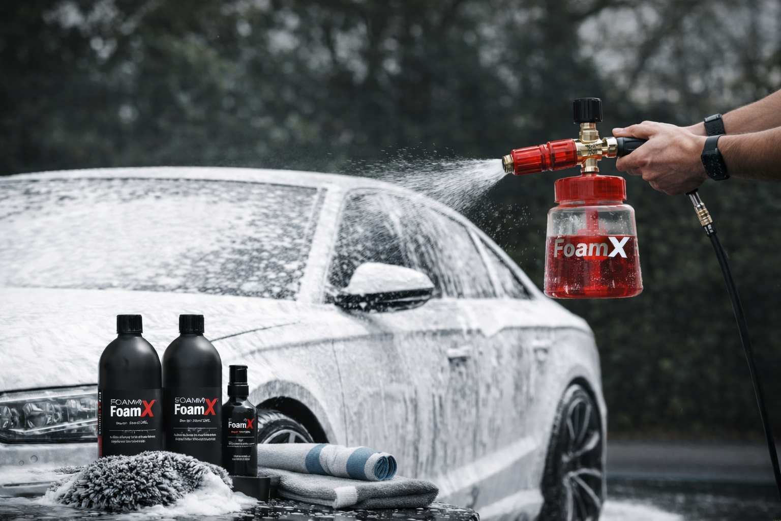 Professional foam, pressure & detailing essentials for effortless car cleaning.